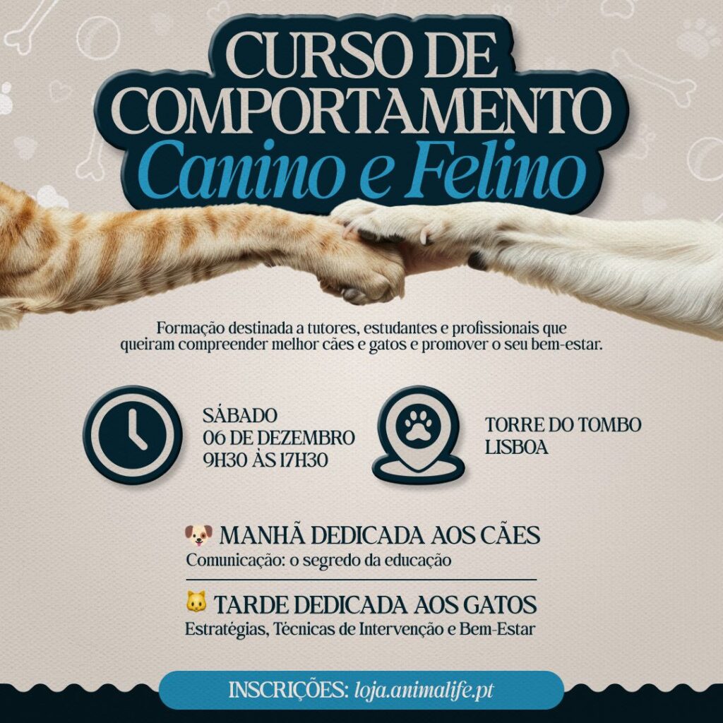 No dia 6 de dezembro, a Torre do Tombo, em Lisboa, abre as portas a um curso único sobre Comportamento Canino e Felino – porque entender cães e gatos é o primeiro passo para garantir o seu bem-estar.