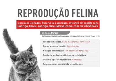 A Palestra “Reprodução Felina” decorre no dia 15 de fevereiro (sábado) no Hospital Veterinário do Atlântico, em Mafra, promovida pela Royal Canin. Ministrada pelo Dr. Paulo Borges diplomado pelo Colégio Europeu de Reprodução Animal (ECAR) desde 2015. Programa – Os princípios sanitários numa coletividade – Profilaxia médico e doenças de coletividade – Neonatologia felina Inscrições […]